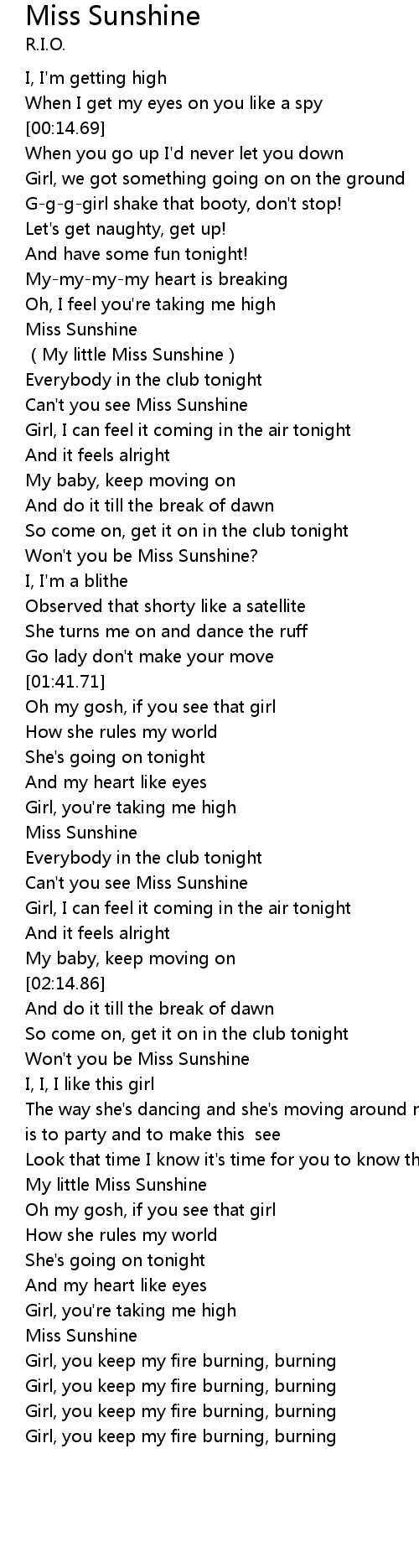 | [00:47.90] | Can't you see Miss Sunshine |