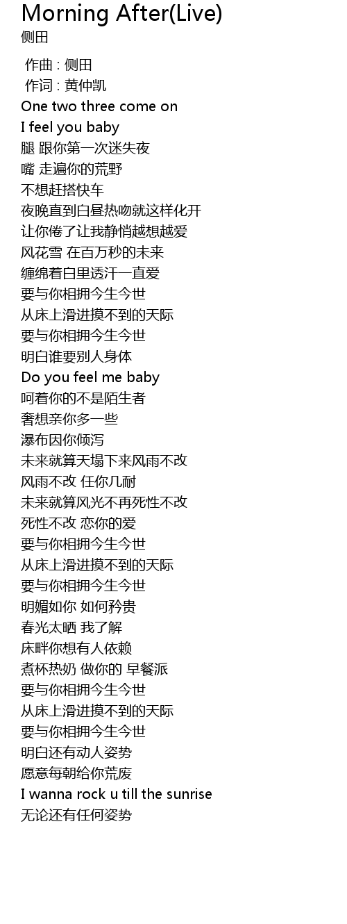 | [03:09.90] | I wanna rock u till the sunrise |
