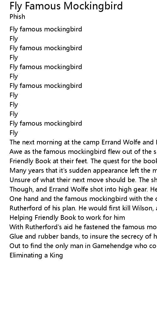 Awe as the famous mockingbird flew out of the sky and laid the Helping |