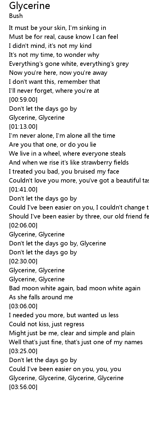 | [01:05.00] | Glycerine, Glycerine |
