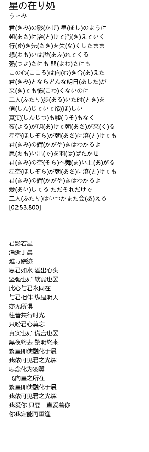 君(きみ)の影(かげ) 星(ほし)のように |
