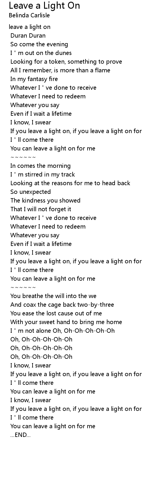 | If you leave a light on, if you leave a light on for me | |