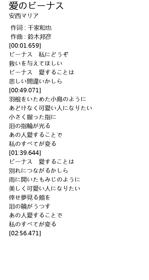 | [00:58.293] | あどけなく可愛い人になりたい |