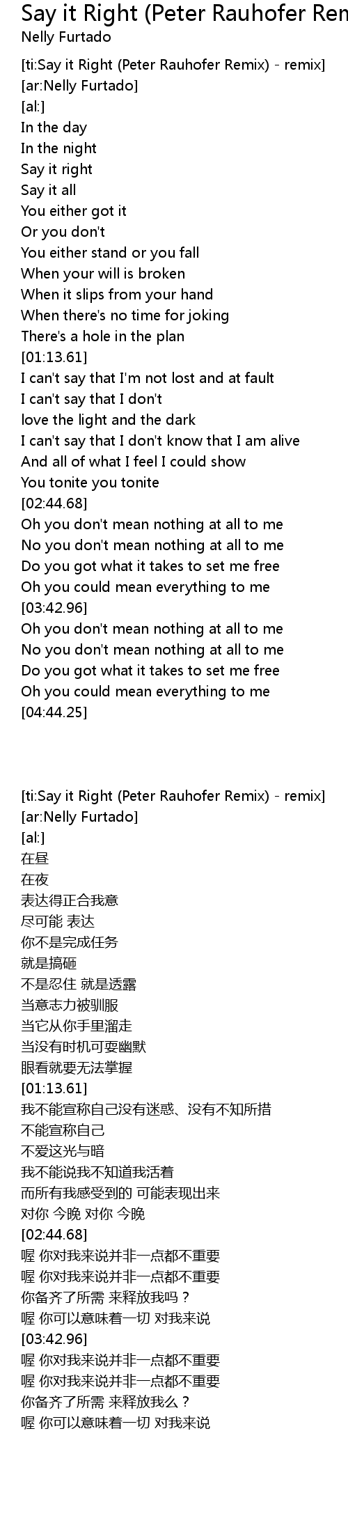 [ti:Say it Right (Peter Rauhofer Remix) - remix] |