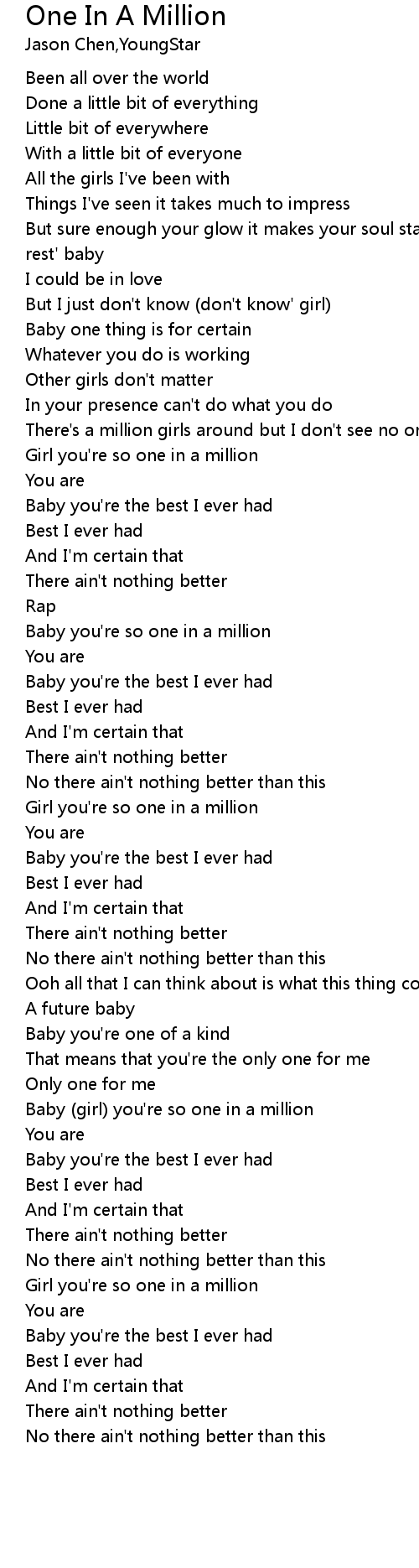 Baby you're so one in a million |