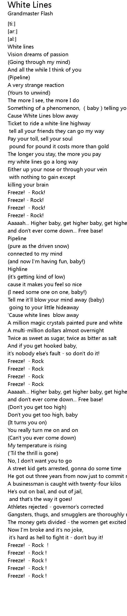 | [00:47.28] | Cause White Lines blow away |