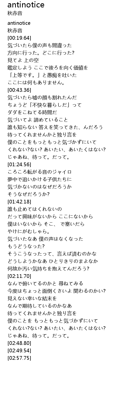| [01:52.46] | 気づいたなあ 僕の声はなくなった |