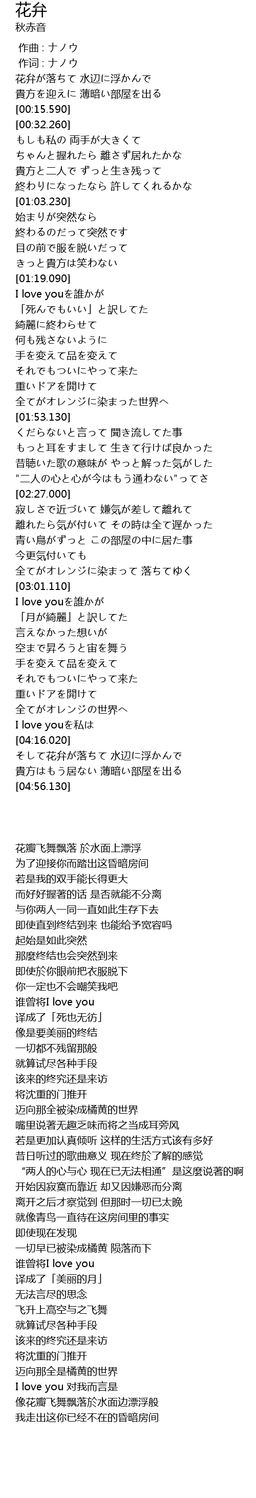 | [04:40.420] | そして花弁が落ちて 水辺に浮かんで |
