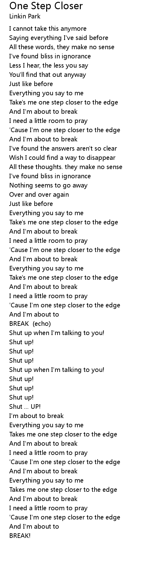 'Cause I'm one step closer to the edge |