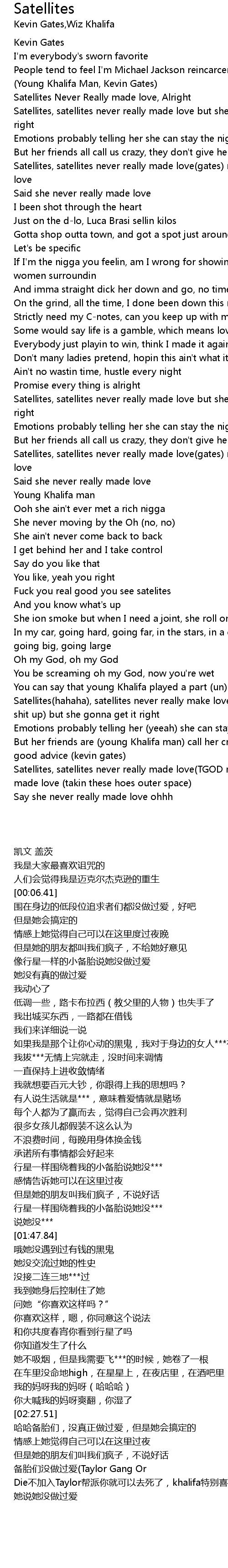 Satellites(hahaha), satellites never really make love(nah mop that shit up) but she gonna get it right |
