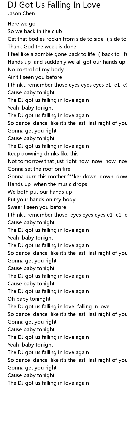 | [02:24.77] | The DJ got us falling in love falling in love |