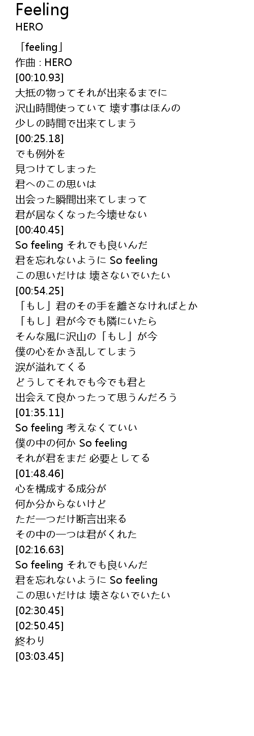| [00:00.93] | 「feeling」 |