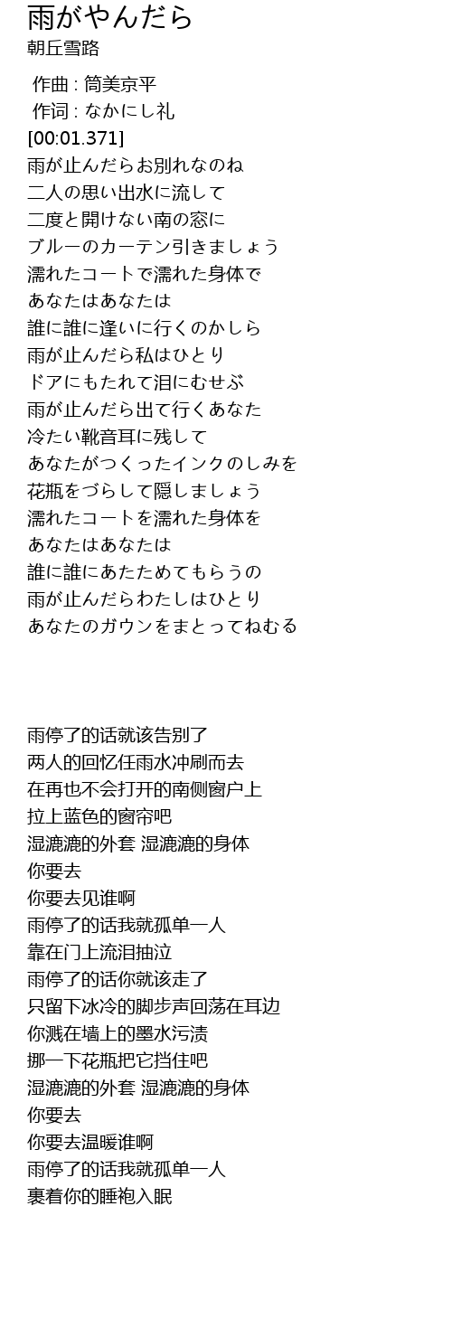 | [02:25.881] | 雨が止んだらわたしはひとり |