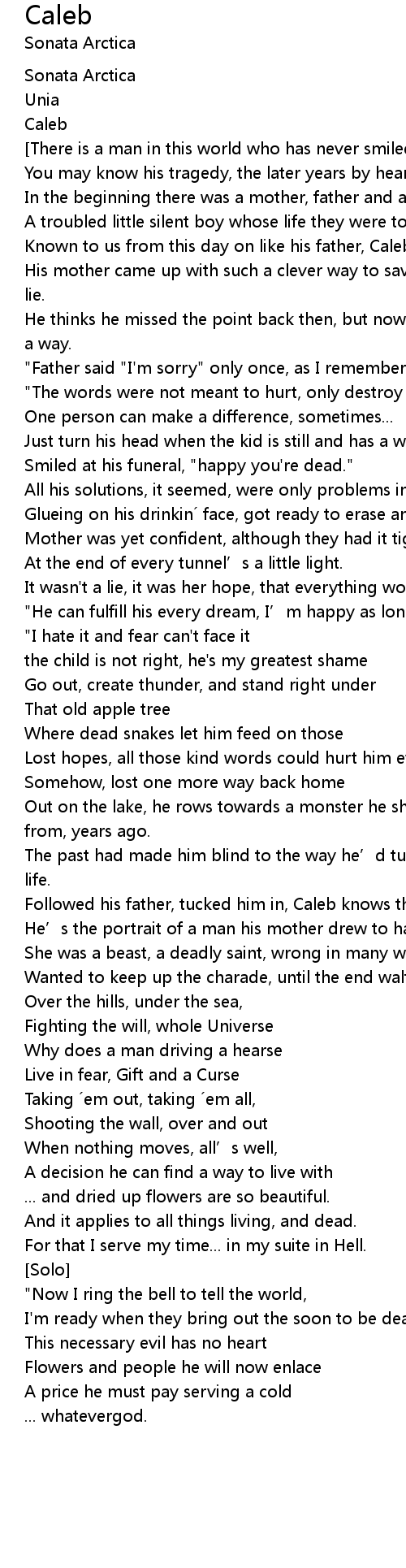 | Followed his father, tucked him in, Caleb knows the trade. | |
