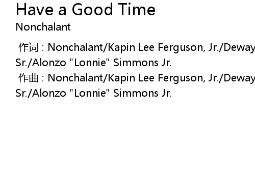 | [00:00.000] | 作词 : Nonchalant/Kapin Lee Ferguson, Jr./Dewayne "Bam" Staten Sr./Alonzo "Lonnie" Simmons Jr. |