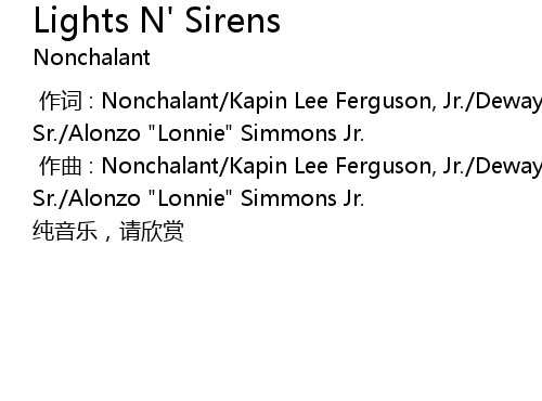 | [00:01.000] | zuo qu : Nonchalant Kapin Lee Ferguson, Jr. Dewayne " Bam" Staten Sr. Alonzo " Lonnie" Simmons Jr. |