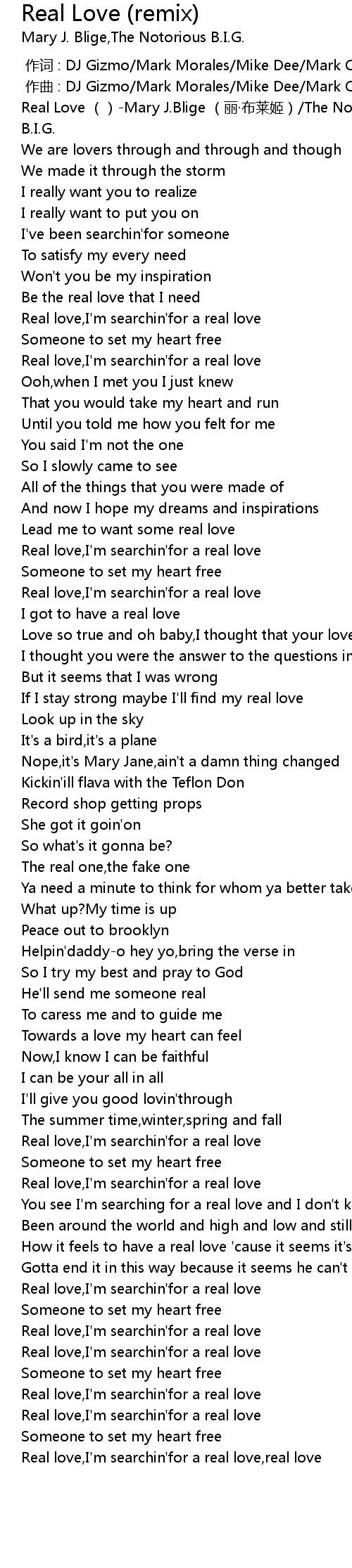 | [00:00.00] | Real Love Mary J. Blige li bu lai ji The Notorious B. I. G. |