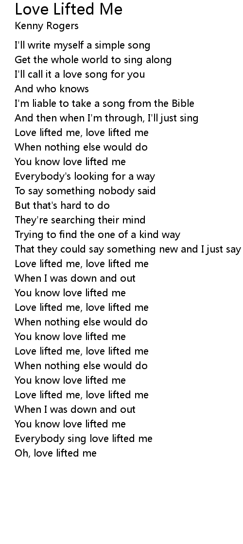 You know love lifted me |