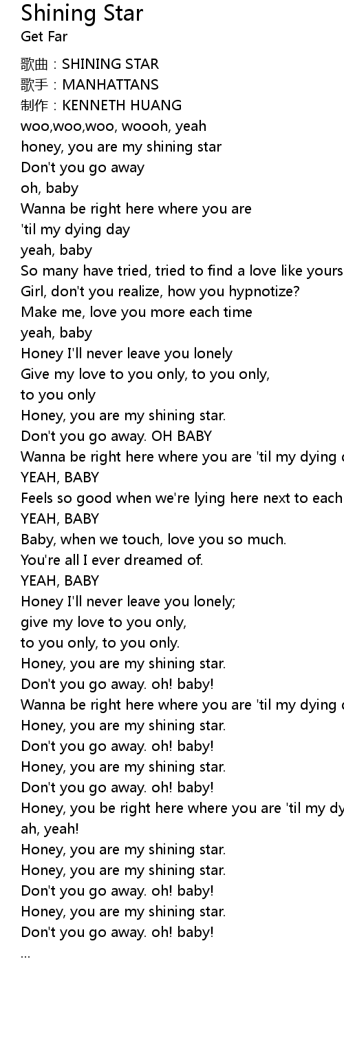| [04:05.02] | Honey, you are my shining star. |