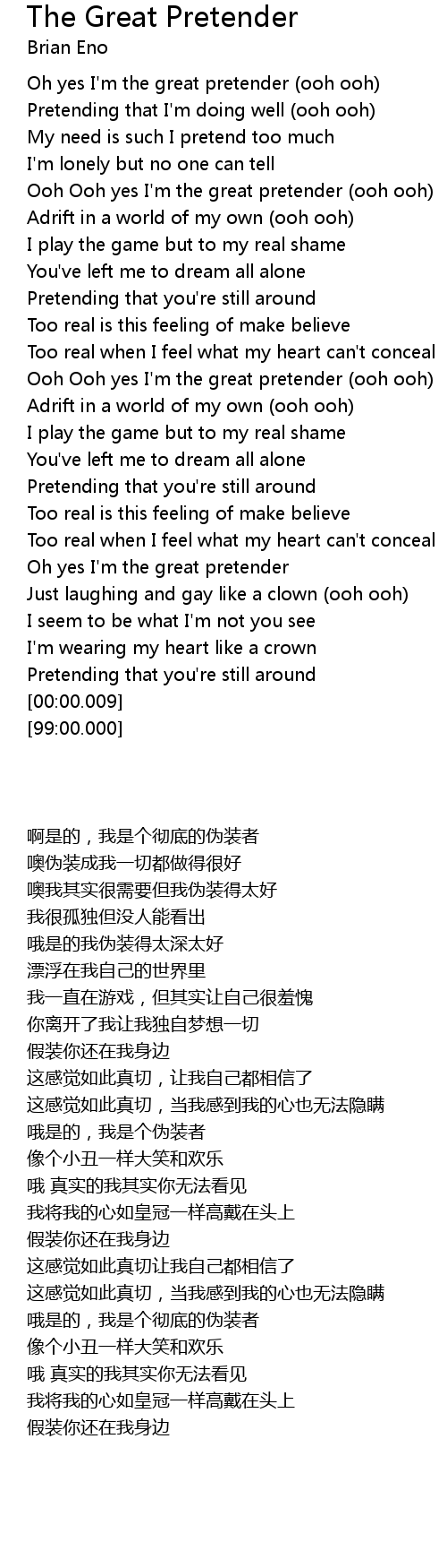 Ooh Ooh yes I'm the great pretender (ooh ooh) |