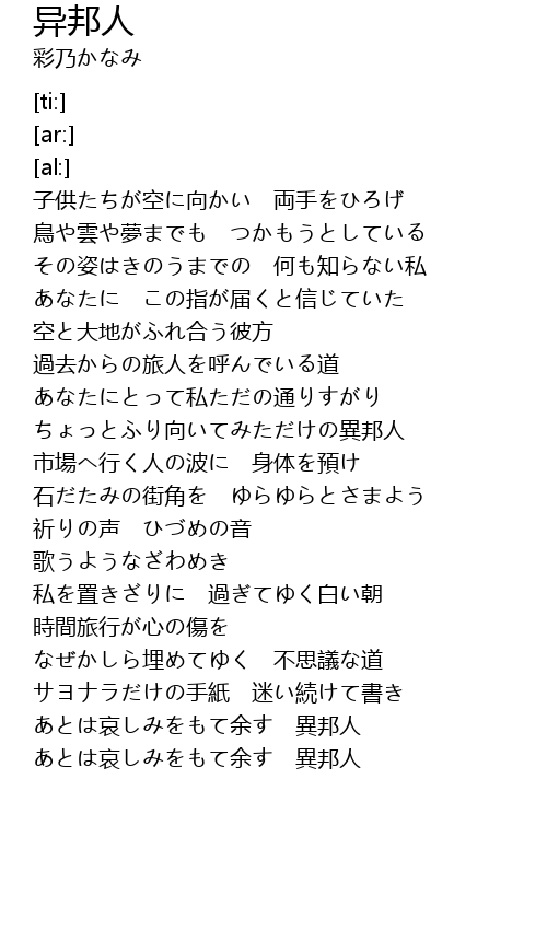 | [03:01.04] | あとは哀しみをもて余す 異邦人 |