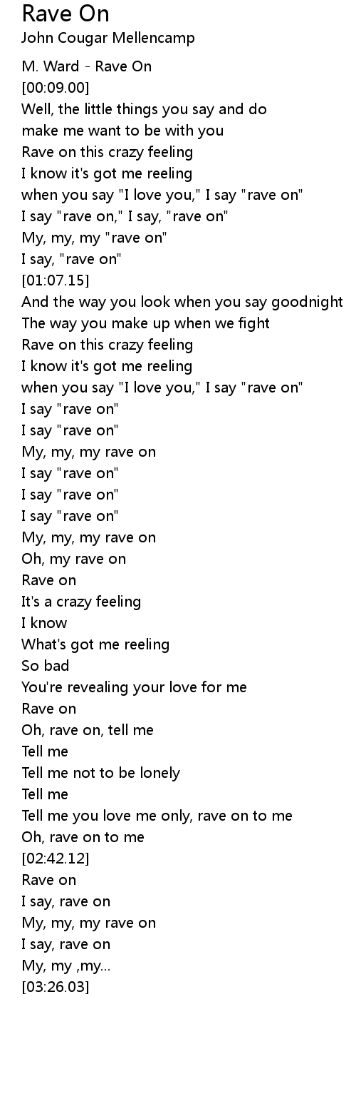 I say "rave on," I say, "rave on" |