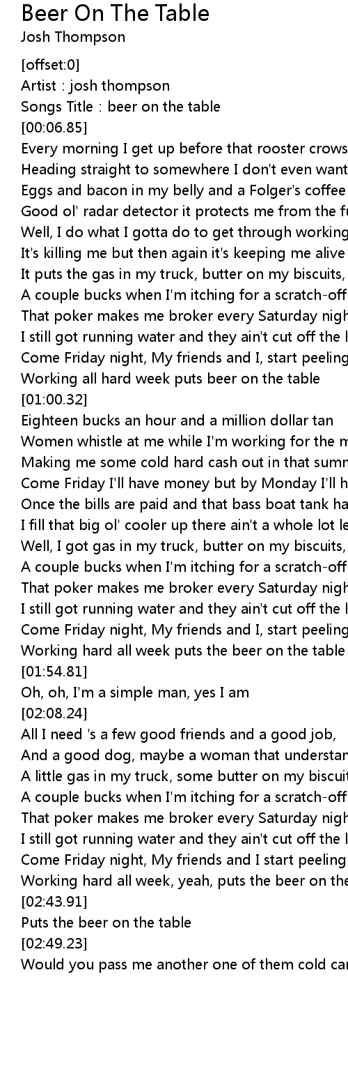 | [00:03.07] | Songs Title: beer on the table |