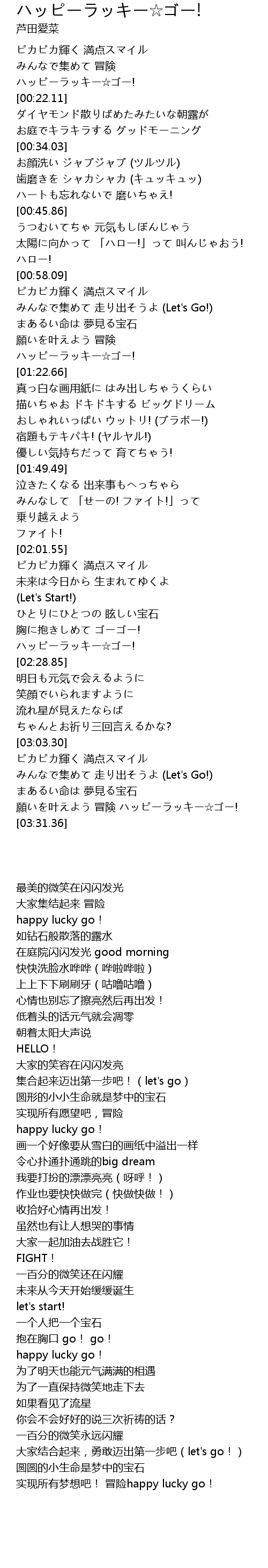 | [03:23.26] | 願いを叶えよう 冒険 ハッピーラッキー☆ゴー! |