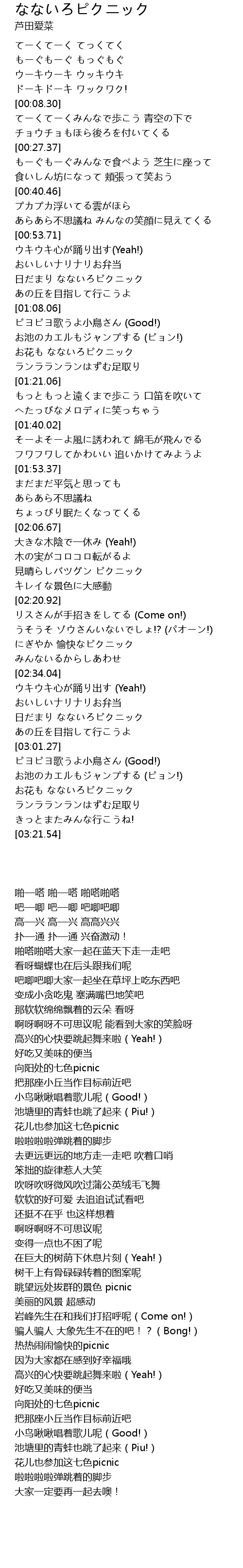 | [02:27.93] | にぎやか 愉快なピクニック |