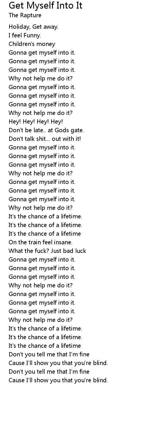 Gonna get myself into it. |