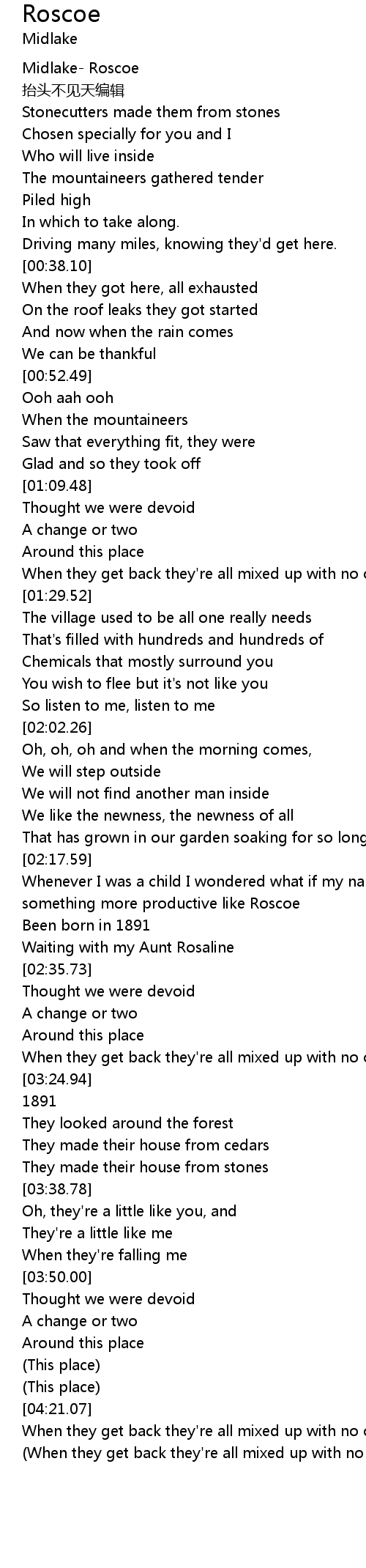 | [00:04.32] | Midlake Roscoe |
