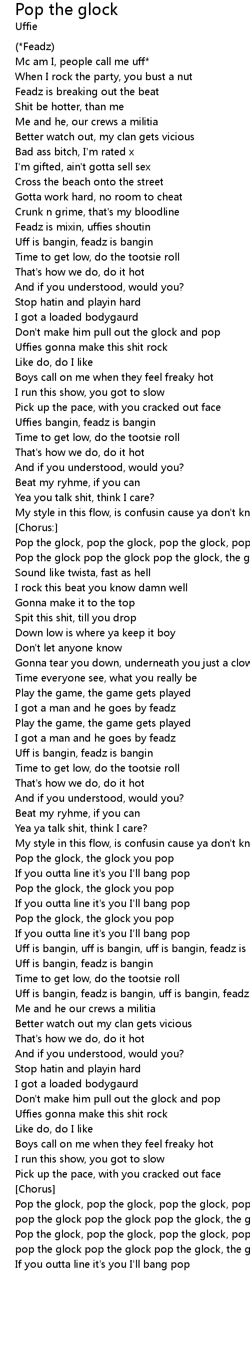 Pop the glock, pop the glock, pop the glock, pop the glock, |