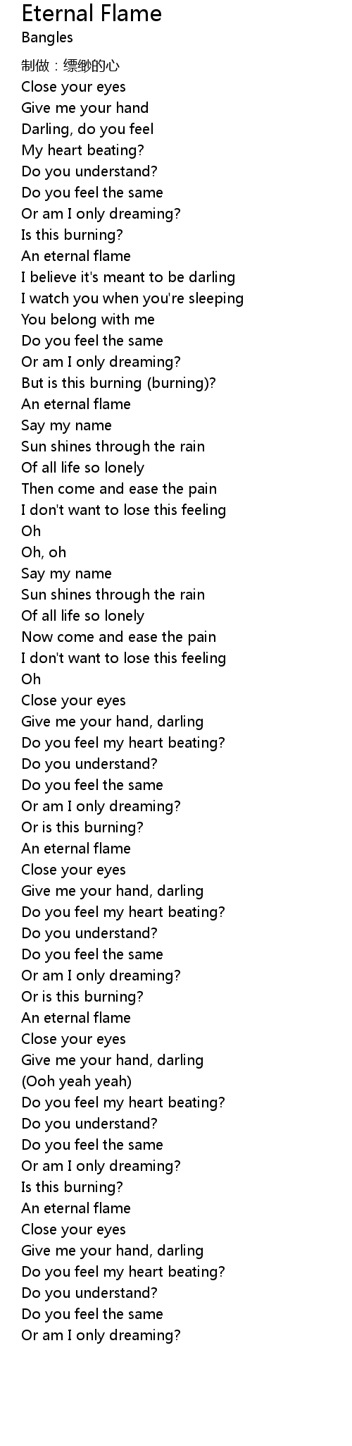 | [03:14.50] | An eternal flame |