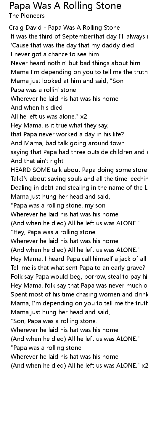"Papa was a rolling stone. |