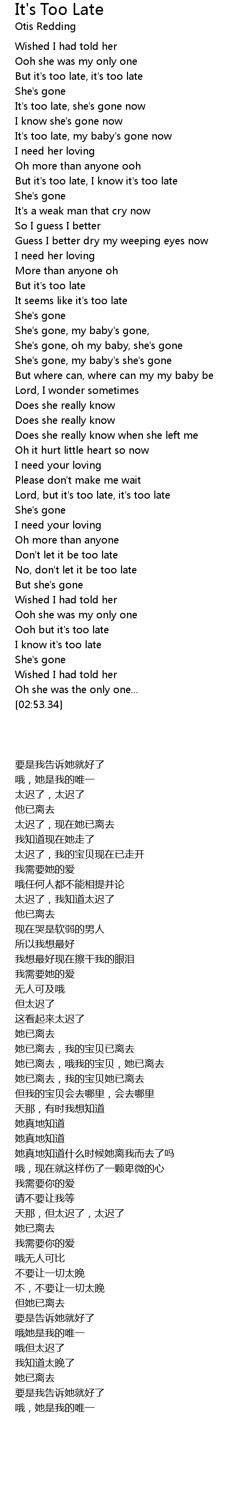 I know it's too late |