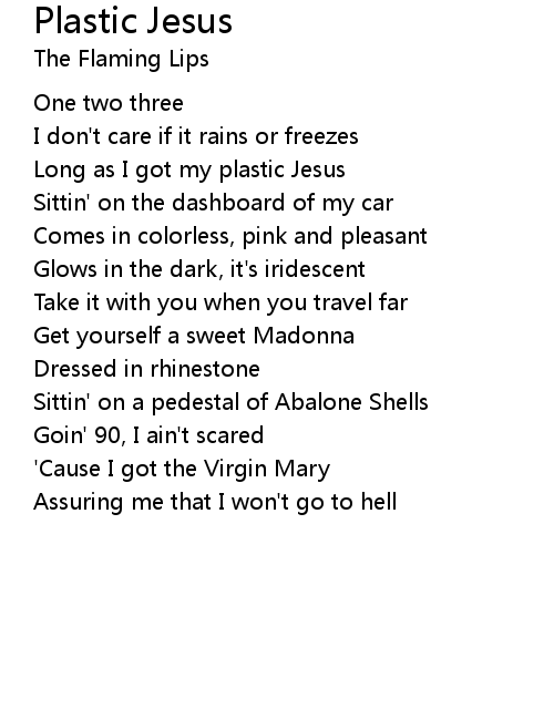 | Long as I got my plastic Jesus | |