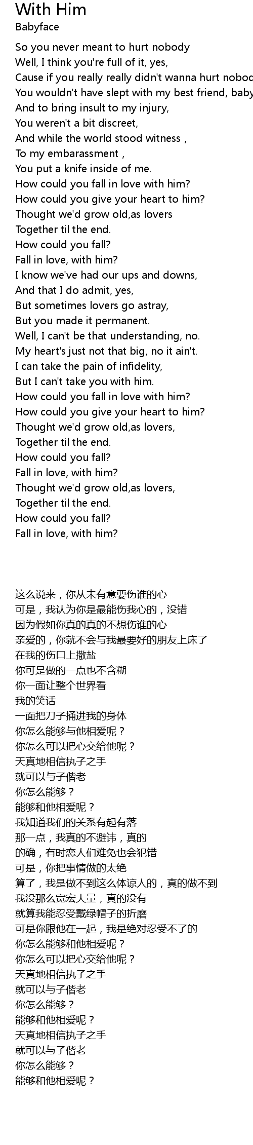 | [00:31.11] | You wouldn' t have slept with my best friend, baby. |