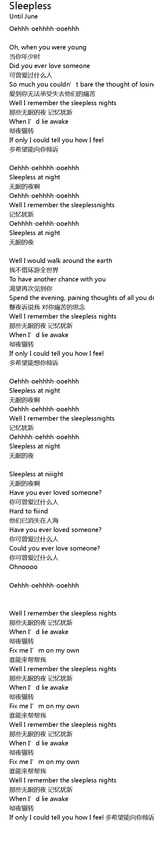 | Song | Sleepless |