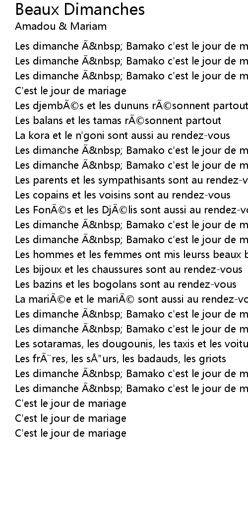 | Song | Beaux Dimanches |