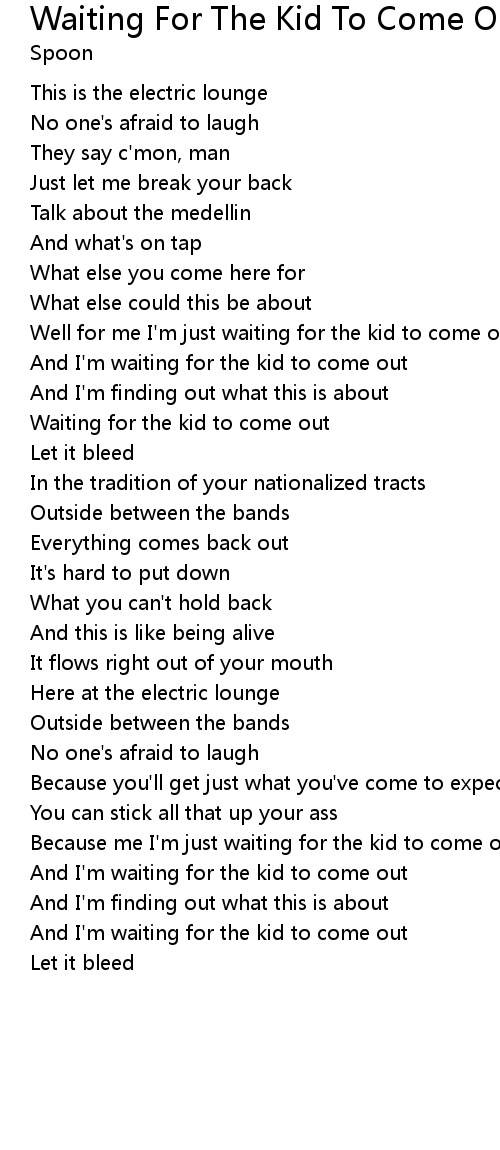 And I'm waiting for the kid to come out |