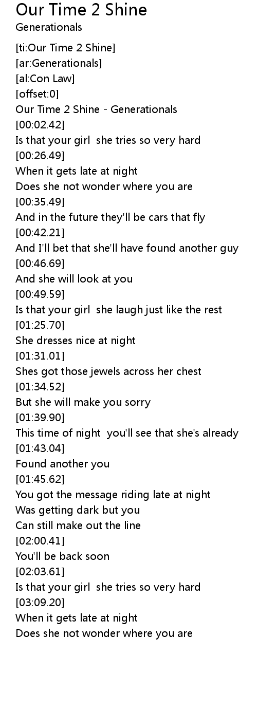 [ti:Our Time 2 Shine] |