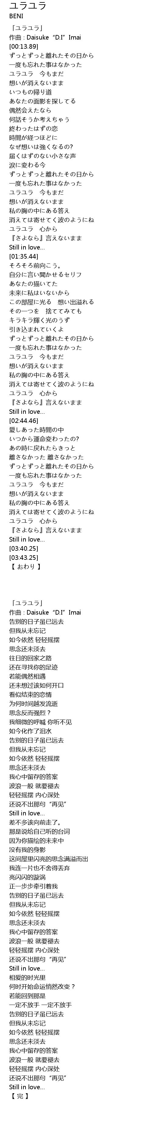 | [03:29.44] | ユラユラ 心から |