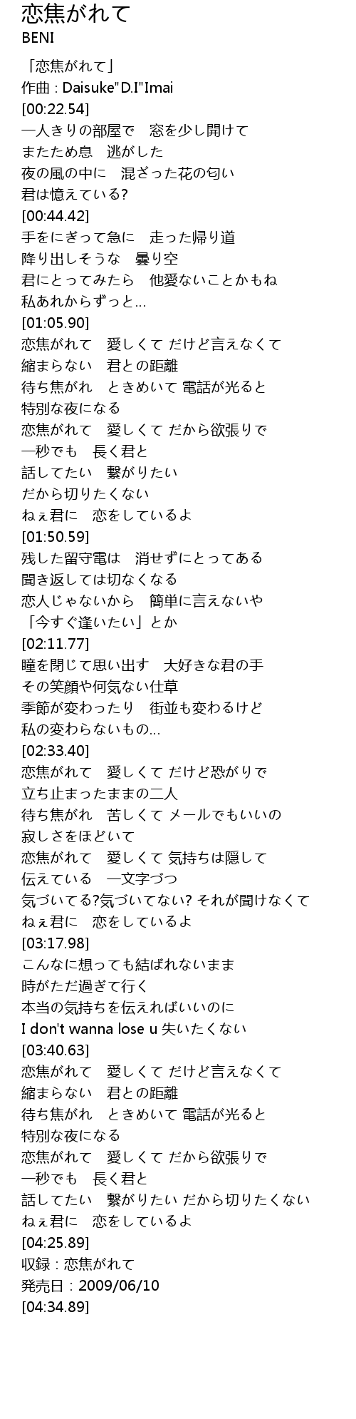 | [03:41.79] | 恋焦がれて 愛しくて だけど言えなくて |