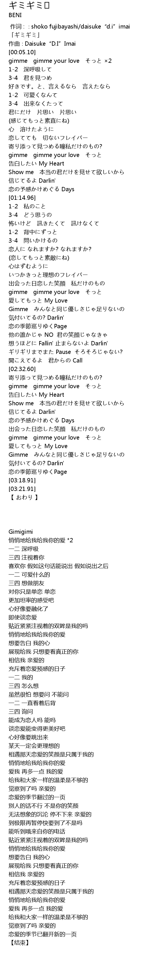 | [00:07.10] | gimme gimme your love そっと ×2 |