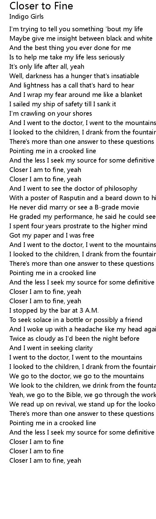 Closer I am to fine |