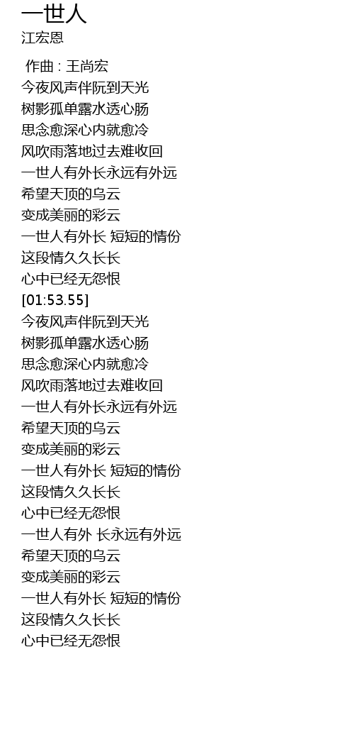 | [03:21.98] | 一世人有外 长永远有外远 |