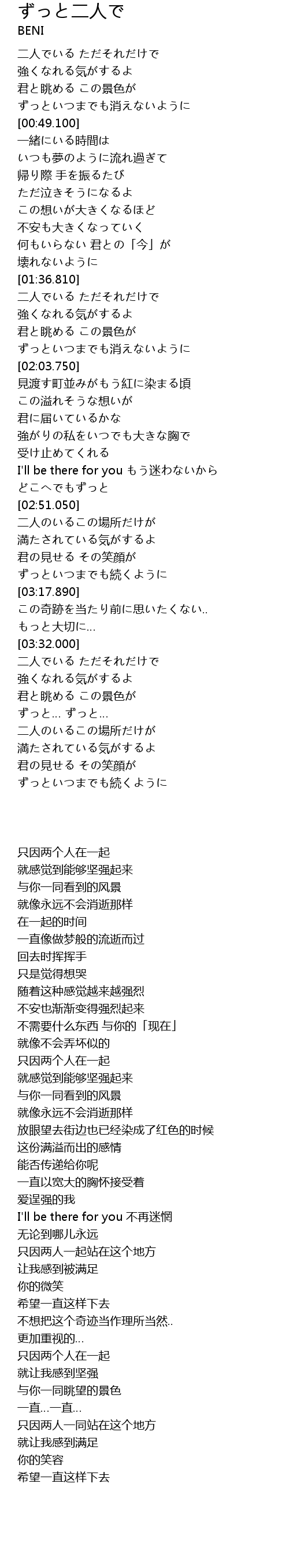 | [02:39.590] | I'll be there for you もう迷わないから |