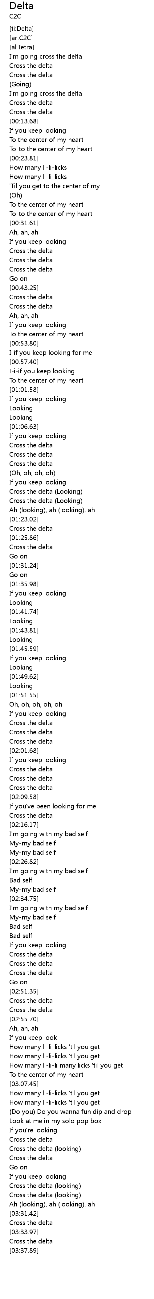| [01:58.34] | Cross the delta |