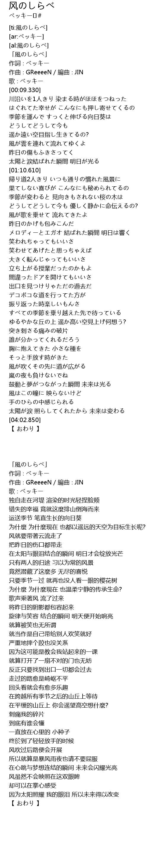 | [00:05.330] | zuo qu GReeeeN bian qu JIN |