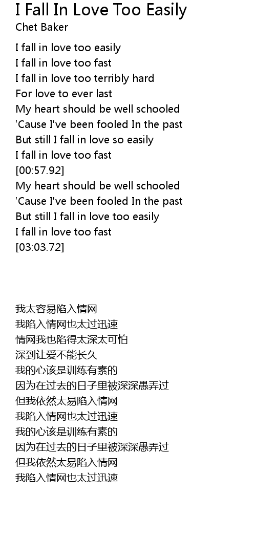 | [00:01.94] | I fall in love too easily |